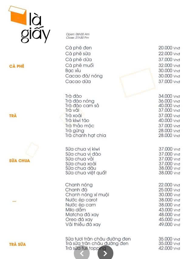 Món nổi bật: Món nước, Cà phê sữa, Espresso, Trà hoa quả