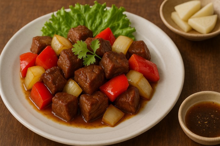 Bò lúc lắc truyền thống: Thịt bò mềm, xào cùng hành tây và ớt chuông.