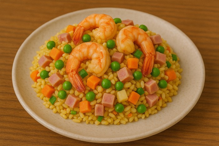 Cơm chiên Dương Châu hải sản : Thêm tôm, mực, nghêu cho hương vị biển cả.