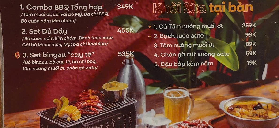 Món nổi bật: BBQ nướng, Buffet nướng, Bia thủ công (craft beer), Món nướng & Lẩu