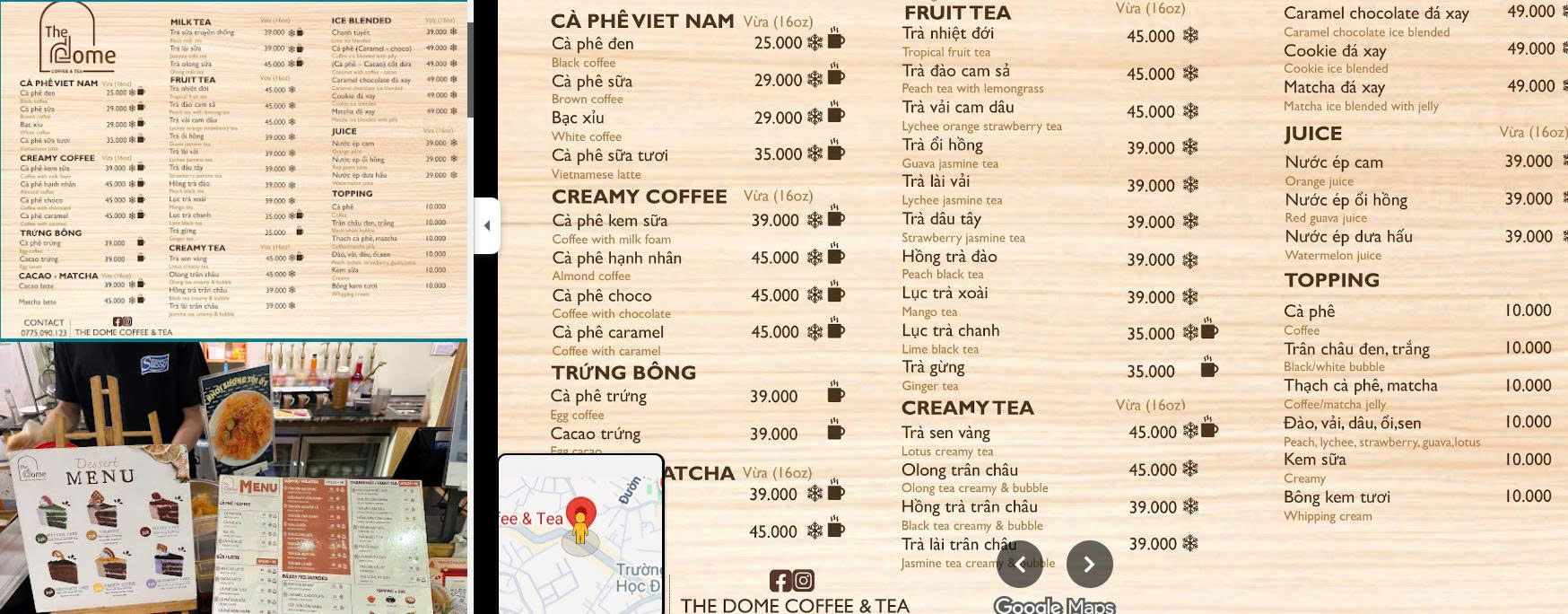 Món nổi bật: Món nước, Cà phê sữa, Trà đào cam sả, Sunrise Mocktail