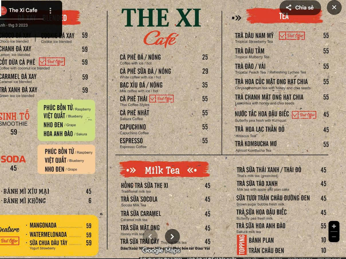Món nổi bật: Món nước, Cà phê phin, Sinh tố bơ, Cà phê sữa